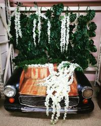 FLEURS DE BOHÈME votre Fleuriste à Saint Laurent du Var, vous propose de découvrir ses compositions florales, ses couronnes à fixer sur le capot, des rubans de tulle ou encore des pompons à la taille de vos envies … Décorez votre voiture de mariage avec «Just Married» ou encore «Vive les mariés» – Prenez vite contact avec Christelle, que cela soit une voiture de luxe, une voiture ancienne ou une voiture de collection, elle vous conseillera pour ce jour d’exception